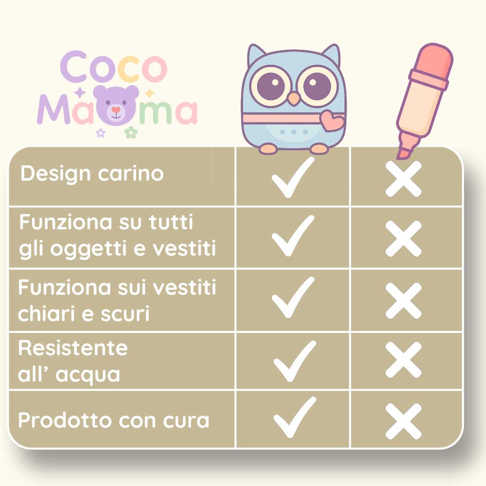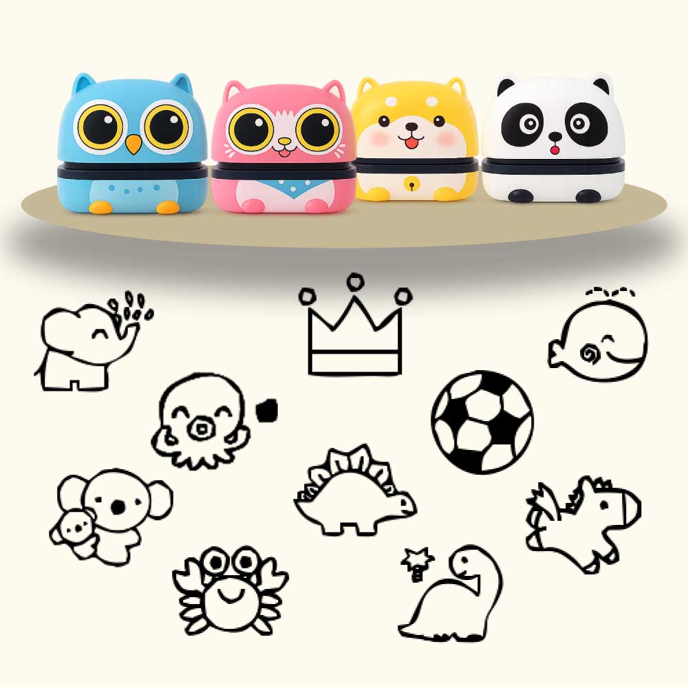Dai un tocco personale al tuo CocoTimbro scegliendo il personaggio che preferisci: gattino, gufetto, panda o cagnolino.